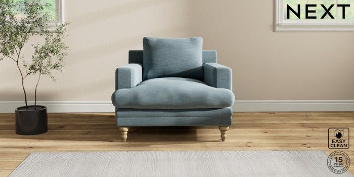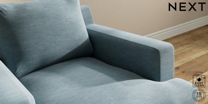 7.2.10 Hutton Deep Relaxed Sit Armchair Fine Chenille Easy Clean Mid Blue Country Turned - Light | Made Click here to use our website with more accessibility support, for example screen readers