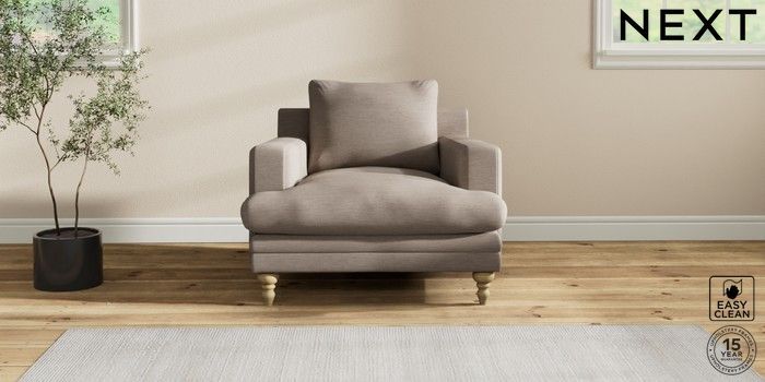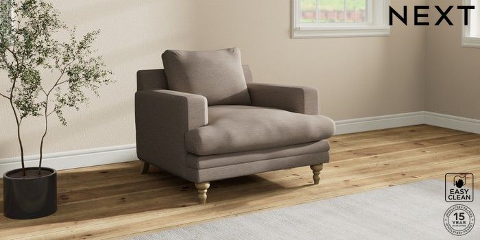 7.2.10 Hutton Deep Relaxed Sit Armchair Fine Chenille Easy Clean Mid Taupe Brown Country Turned - Light | Made Click here to use our website with more accessibility support, for example screen readers