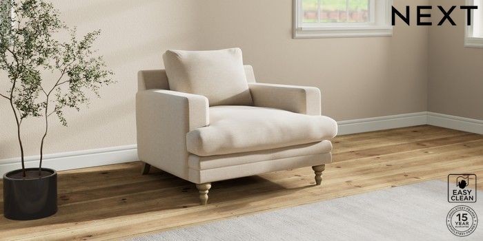 7.2.10 Hutton Deep Relaxed Sit Armchair Fine Chenille Easy Clean Oyster Country Turned - Light | Made Click here to use our website with more accessibility support, for example screen readers