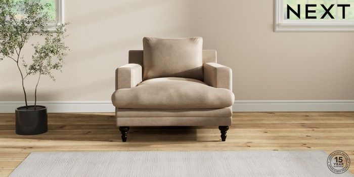 7.2.10 Hutton Deep Relaxed Sit Armchair Luxe Chenille Mid Camel Beige Country Turned - Dark | Made Click here to use our website with more accessibility support, for example screen readers