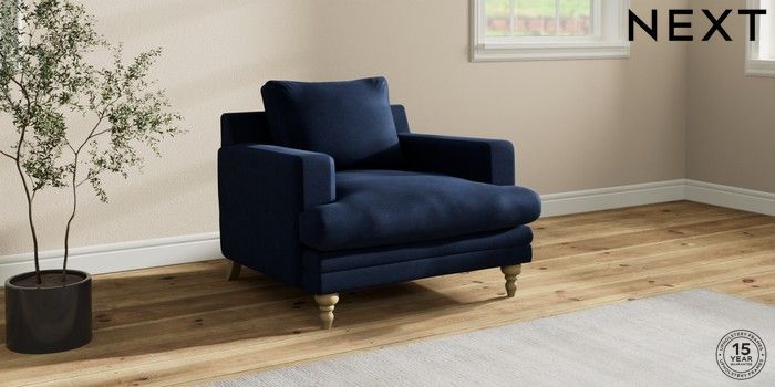 7.2.10 Hutton Deep Relaxed Sit Armchair Luxe Chenille Navy Blue Country Turned - Light | Made Click here to use our website with more accessibility support, for example screen readers