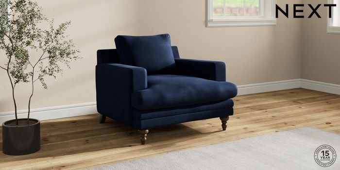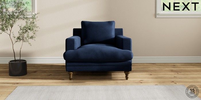 7.2.10 Hutton Deep Relaxed Sit Armchair Luxe Chenille Navy Blue Country Turned - Mid | Made Click here to use our website with more accessibility support, for example screen readers