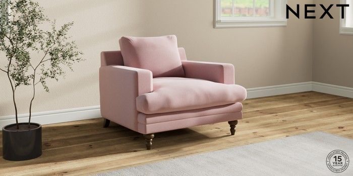 7.2.10 Hutton Deep Relaxed Sit Armchair Natural Mix Light Rose Pink Country Turned - Mid | Made Click here to use our website with more accessibility support, for example screen readers