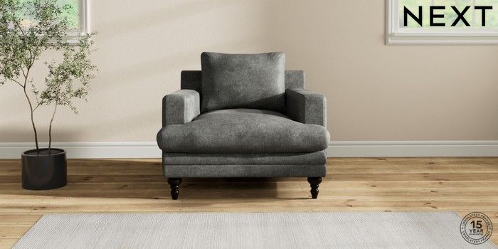 7.2.10 Hutton Deep Relaxed Sit Armchair Plush Chenille Dark Grey Country Turned - Dark | Made Click here to use our website with more accessibility support, for example screen readers