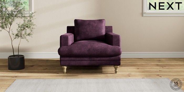 7.2.10 Hutton Deep Relaxed Sit Armchair Plush Chenille Dark Plum Purple Country Turned - Light | Made Click here to use our website with more accessibility support, for example screen readers