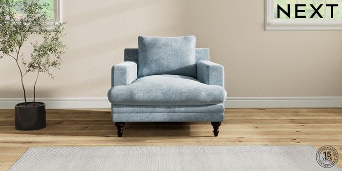 7.2.10 Hutton Deep Relaxed Sit Armchair Plush Chenille Light Blue Country Turned - Dark | Made Click here to use our website with more accessibility support, for example screen readers