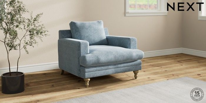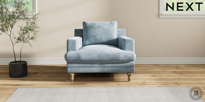 7.2.10 Hutton Deep Relaxed Sit Armchair Plush Chenille Light Blue Country Turned - Light | Made Click here to use our website with more accessibility support, for example screen readers
