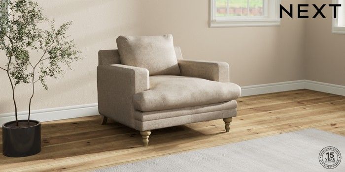 7.2.10 Hutton Deep Relaxed Sit Armchair Plush Chenille Light Natural Country Turned - Light | Made Click here to use our website with more accessibility support, for example screen readers