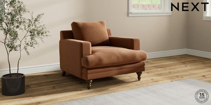 7.2.10 Hutton Deep Relaxed Sit Armchair Ripple Chenille Mid Rust Brown Country Turned - Mid | Made Click here to use our website with more accessibility support, for example screen readers
