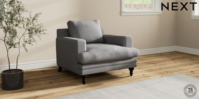 7.2.10 Hutton Deep Relaxed Sit Armchair Studio Chenille Mid Grey Country Turned - Dark | Made Click here to use our website with more accessibility support, for example screen readers