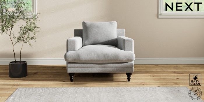 7.2.10 Hutton Deep Relaxed Sit Armchair Tweedy Blend Easy Clean Light Silver Grey Country Turned - Dark | Made Click here to use our website with more accessibility support, for example screen readers