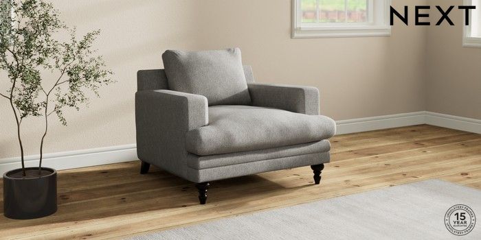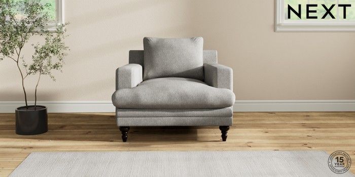 7.2.10 Hutton Deep Relaxed Sit Armchair Tweedy Chenille Mid Grey Country Turned - Dark | Made Click here to use our website with more accessibility support, for example screen readers
