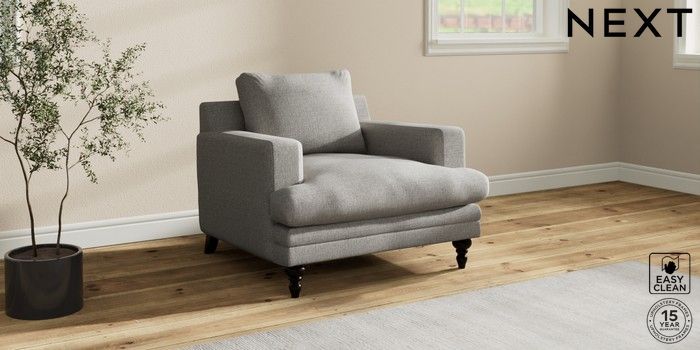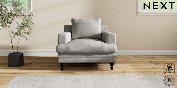 7.2.10 Hutton Deep Relaxed Sit Armchair Woven Chenille Easy Clean Light Grey Country Turned - Dark | Made Click here to use our website with more accessibility support, for example screen readers
