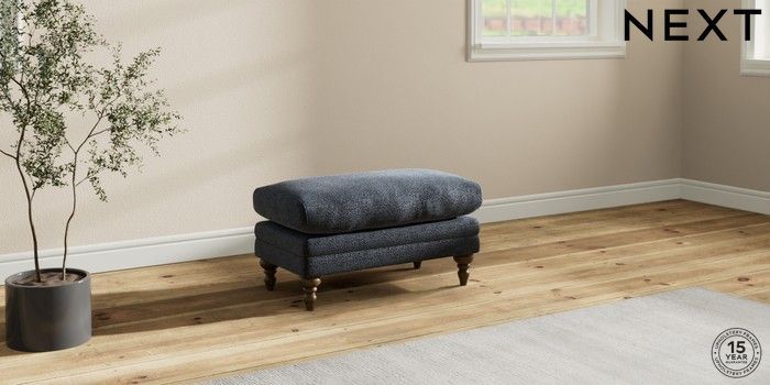 7.2.10 Hutton Deep Relaxed Sit Footstool Boucle Chenille Dark Slate Blue High Turned - Mid | Made Click here to use our website with more accessibility support, for example screen readers