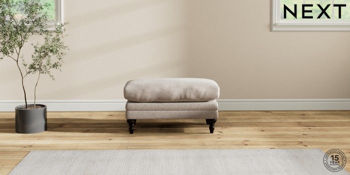 7.2.10 Hutton Deep Relaxed Sit Footstool Boucle Chenille Light Natural High Turned - Dark | Made Click here to use our website with more accessibility support, for example screen readers