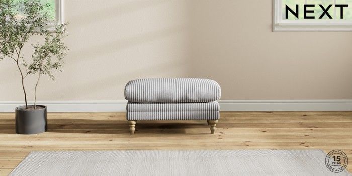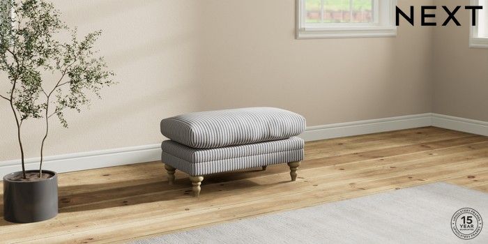 7.2.10 Hutton Deep Relaxed Sit Footstool Chenille Stripe Slate Blue High Turned - Light | Made Click here to use our website with more accessibility support, for example screen readers