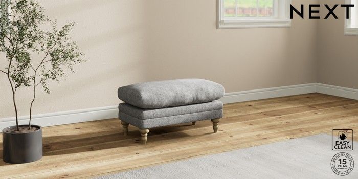 7.2.10 Hutton Deep Relaxed Sit Footstool Chunky Boucle Easy Clean Light Grey High Turned - Light | Made Click here to use our website with more accessibility support, for example screen readers