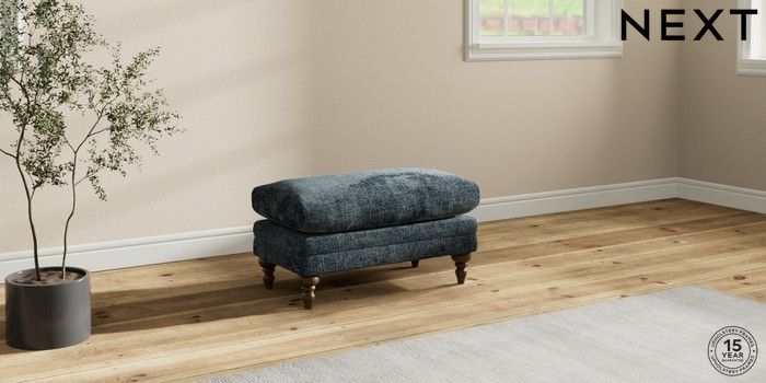 7.2.10 Hutton Deep Relaxed Sit Footstool Chunky Chenille Dark Navy Blue High Turned - Mid | Made Click here to use our website with more accessibility support, for example screen readers