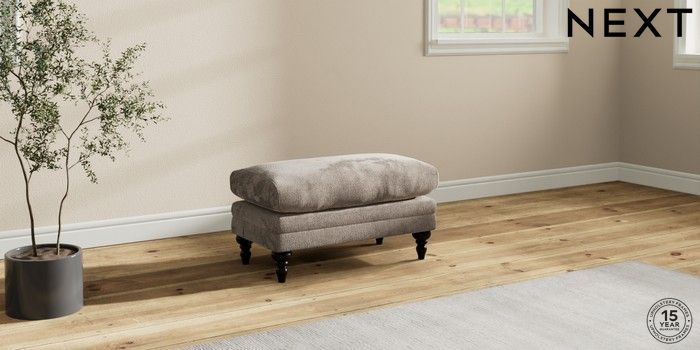 7.2.10 Hutton Deep Relaxed Sit Footstool Chunky Chenille Light Dove High Turned - Dark | Made Click here to use our website with more accessibility support, for example screen readers