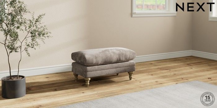7.2.10 Hutton Deep Relaxed Sit Footstool Chunky Chenille Light Dove High Turned - Light | Made Click here to use our website with more accessibility support, for example screen readers