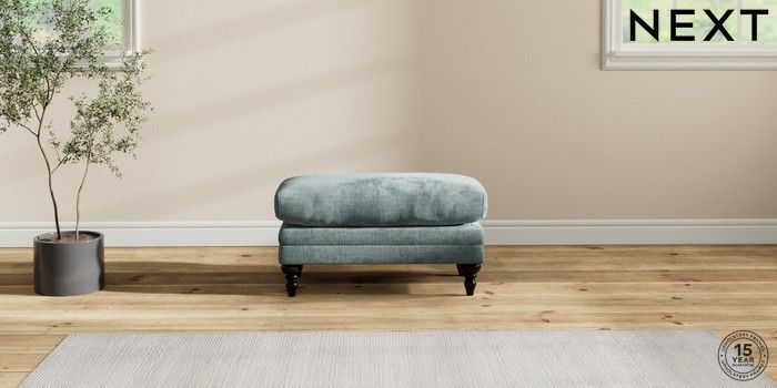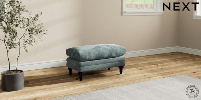 7.2.10 Hutton Deep Relaxed Sit Footstool Chunky Chenille Light Teal Green High Turned - Dark | Made Click here to use our website with more accessibility support, for example screen readers