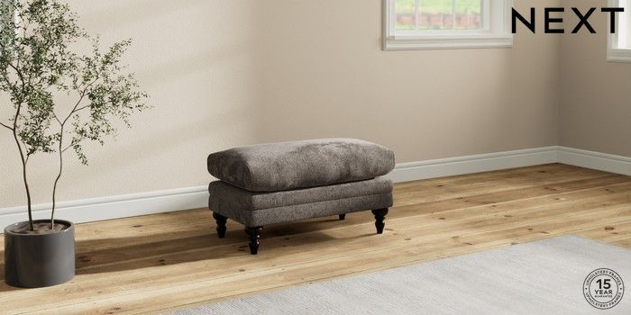 7.2.10 Hutton Deep Relaxed Sit Footstool Chunky Chenille Mink Brown High Turned - Dark | Made Click here to use our website with more accessibility support, for example screen readers
