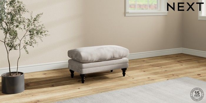 7.2.10 Hutton Deep Relaxed Sit Footstool Chunky Chenille Oyster High Turned - Dark | Made Click here to use our website with more accessibility support, for example screen readers
