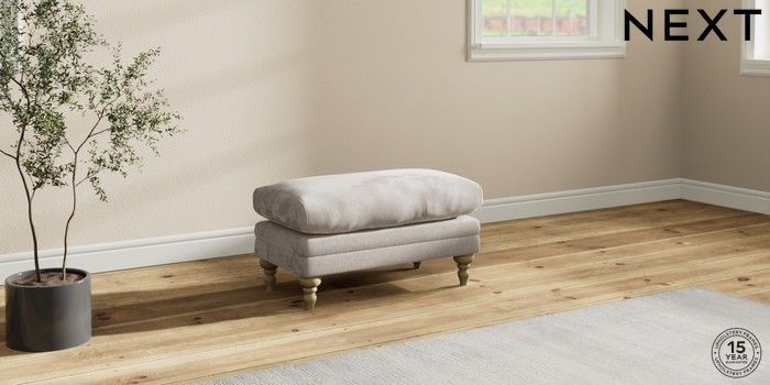 7.2.10 Hutton Deep Relaxed Sit Footstool Chunky Chenille Oyster High Turned - Light | Made Click here to use our website with more accessibility support, for example screen readers