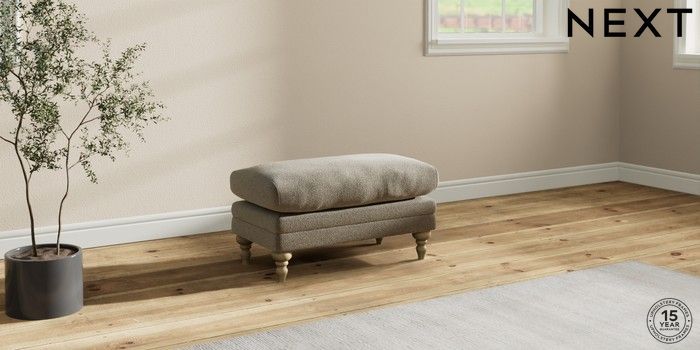 7.2.10 Hutton Deep Relaxed Sit Footstool Chunky Marl Light Olive Green High Turned - Light | Made Click here to use our website with more accessibility support, for example screen readers