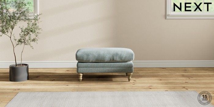 7.2.10 Hutton Deep Relaxed Sit Footstool Chunky Marl Mid Blue High Turned - Light | Made Click here to use our website with more accessibility support, for example screen readers