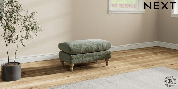 7.2.10 Hutton Deep Relaxed Sit Footstool Chunky Texture Mid Forest Green High Turned - Light | Made Click here to use our website with more accessibility support, for example screen readers