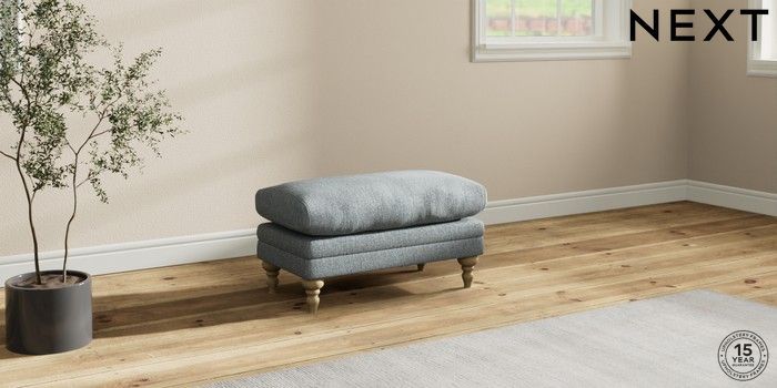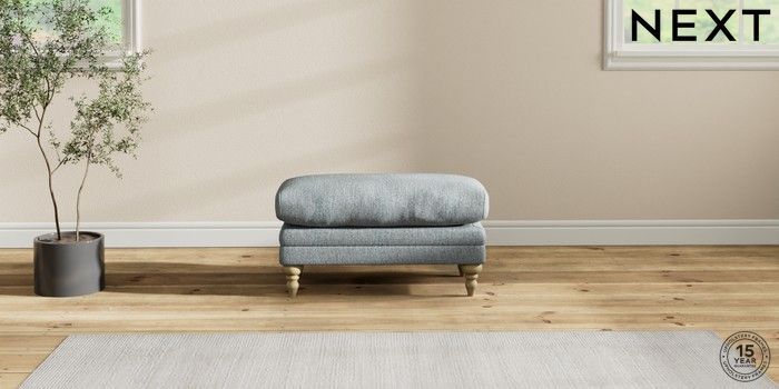 7.2.10 Hutton Deep Relaxed Sit Footstool Chunky Weave Mid Blue High Turned - Light | Made Click here to use our website with more accessibility support, for example screen readers