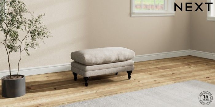 7.2.10 Hutton Deep Relaxed Sit Footstool Chunky Weave Mid Natural High Turned - Dark | Made Click here to use our website with more accessibility support, for example screen readers