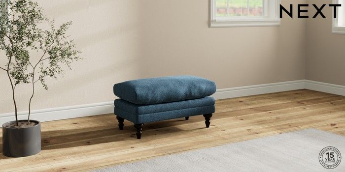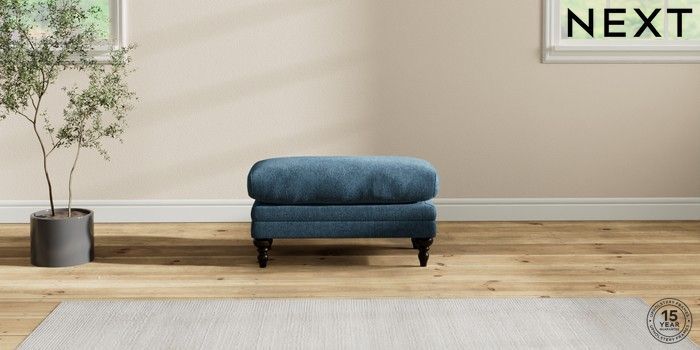 7.2.10 Hutton Deep Relaxed Sit Footstool Cotswold Chenille Dark Blue High Turned - Dark | Made Click here to use our website with more accessibility support, for example screen readers