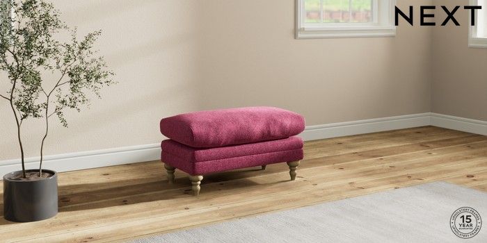 7.2.10 Hutton Deep Relaxed Sit Footstool Cotswold Chenille Dark Raspberry Pink High Turned - Light | Made Click here to use our website with more accessibility support, for example screen readers