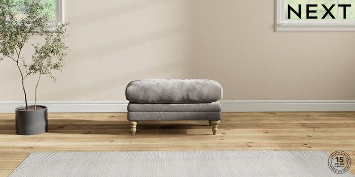 7.2.10 Hutton Deep Relaxed Sit Footstool Distressed Velour French Grey High Turned - Light | Made Click here to use our website with more accessibility support, for example screen readers
