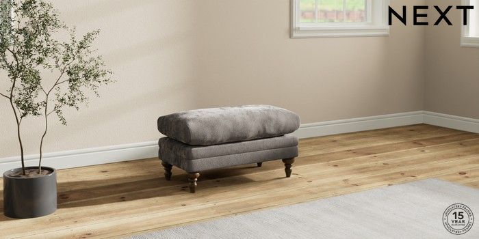7.2.10 Hutton Deep Relaxed Sit Footstool Distressed Velour French Grey High Turned - Mid | Made Click here to use our website with more accessibility support, for example screen readers