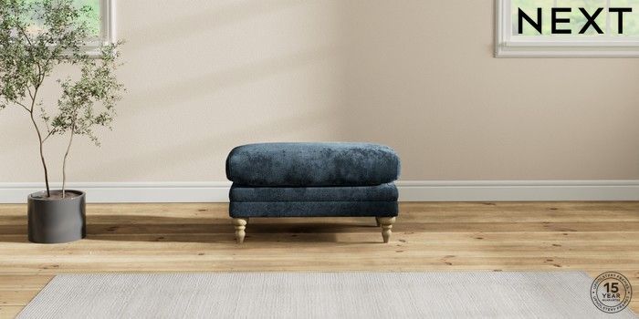 7.2.10 Hutton Deep Relaxed Sit Footstool Distressed Velour Midnight Blue High Turned - Light | Made Click here to use our website with more accessibility support, for example screen readers