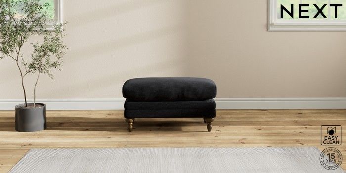 7.2.10 Hutton Deep Relaxed Sit Footstool Fine Chenille Easy Clean Black High Turned - Mid | Made Click here to use our website with more accessibility support, for example screen readers