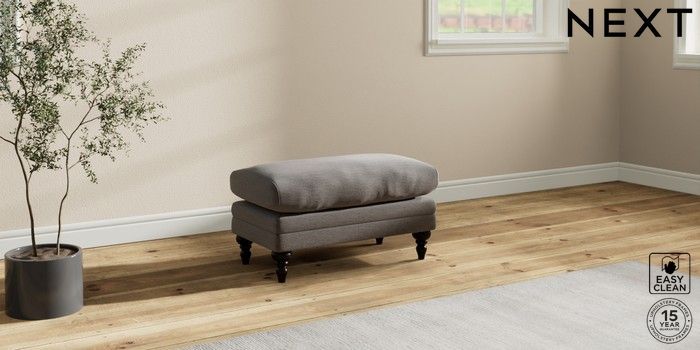 7.2.10 Hutton Deep Relaxed Sit Footstool Fine Chenille Easy Clean Dark Smoke Grey High Turned - Dark | Made Click here to use our website with more accessibility support, for example screen readers