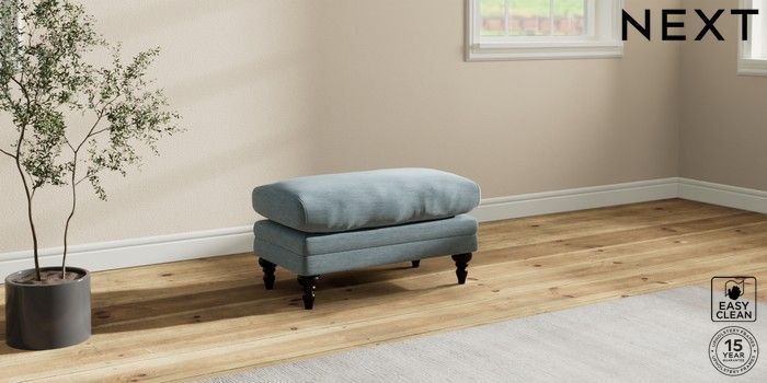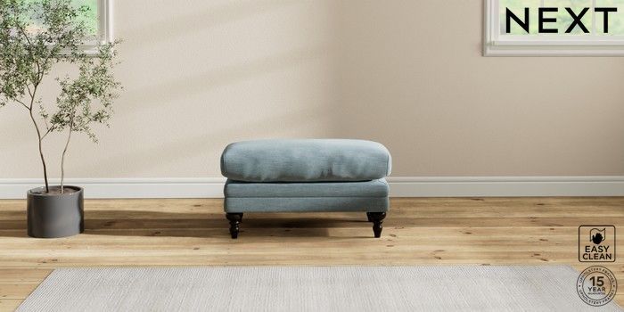 7.2.10 Hutton Deep Relaxed Sit Footstool Fine Chenille Easy Clean Mid Blue High Turned - Dark | Made Click here to use our website with more accessibility support, for example screen readers