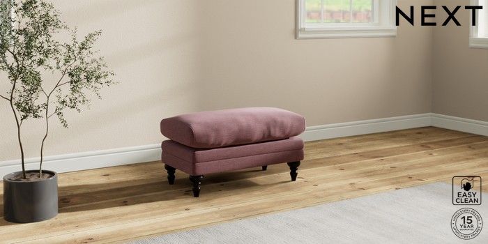 7.2.10 Hutton Deep Relaxed Sit Footstool Fine Chenille Easy Clean Mid Mulberry Purple High Turned - Dark | Made Click here to use our website with more accessibility support, for example screen readers