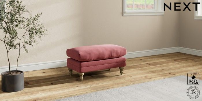 7.2.10 Hutton Deep Relaxed Sit Footstool Fine Chenille Easy Clean Mid Pink High Turned - Light | Made Click here to use our website with more accessibility support, for example screen readers