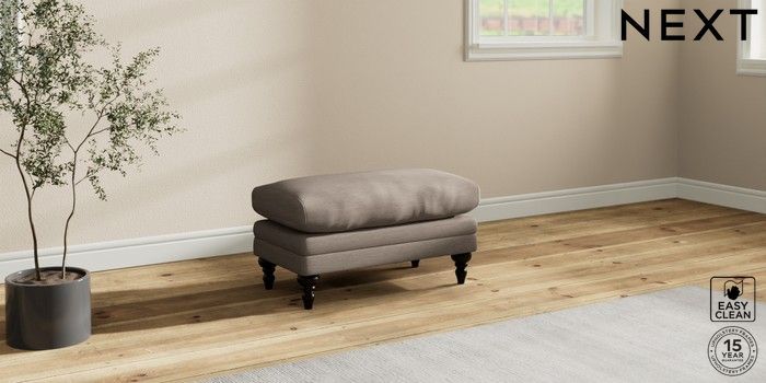 7.2.10 Hutton Deep Relaxed Sit Footstool Fine Chenille Easy Clean Mid Taupe Brown High Turned - Dark | Made Click here to use our website with more accessibility support, for example screen readers