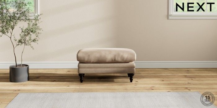 7.2.10 Hutton Deep Relaxed Sit Footstool Luxe Chenille Mid Camel Beige High Turned - Dark | Made Click here to use our website with more accessibility support, for example screen readers