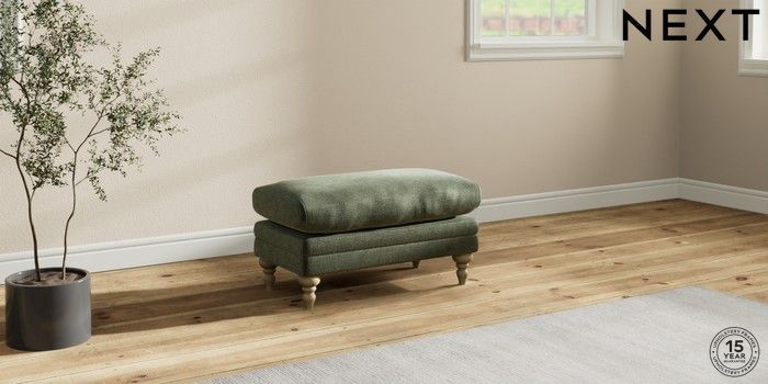7.2.10 Hutton Deep Relaxed Sit Footstool Luxe Chenille Mid Green High Turned - Light | Made Click here to use our website with more accessibility support, for example screen readers