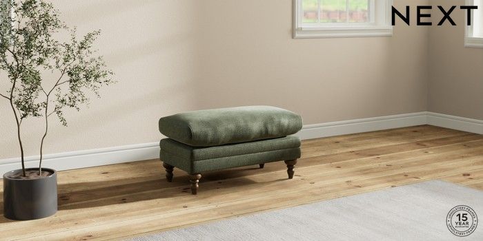 7.2.10 Hutton Deep Relaxed Sit Footstool Luxe Chenille Mid Green High Turned - Mid | Made Click here to use our website with more accessibility support, for example screen readers