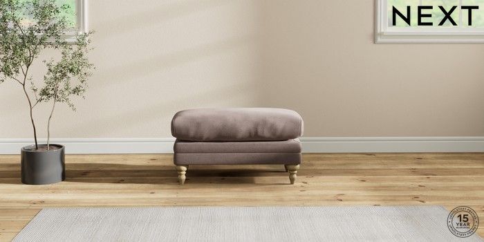 7.2.10 Hutton Deep Relaxed Sit Footstool Luxe Chenille Mink Brown High Turned - Light | Made Click here to use our website with more accessibility support, for example screen readers