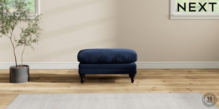 7.2.10 Hutton Deep Relaxed Sit Footstool Luxe Chenille Navy Blue High Turned - Dark | Made Click here to use our website with more accessibility support, for example screen readers