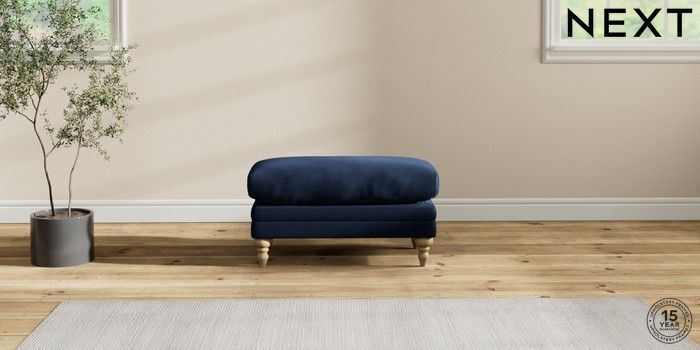 7.2.10 Hutton Deep Relaxed Sit Footstool Luxe Chenille Navy Blue High Turned - Light | Made Click here to use our website with more accessibility support, for example screen readers